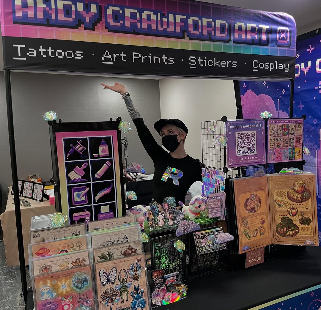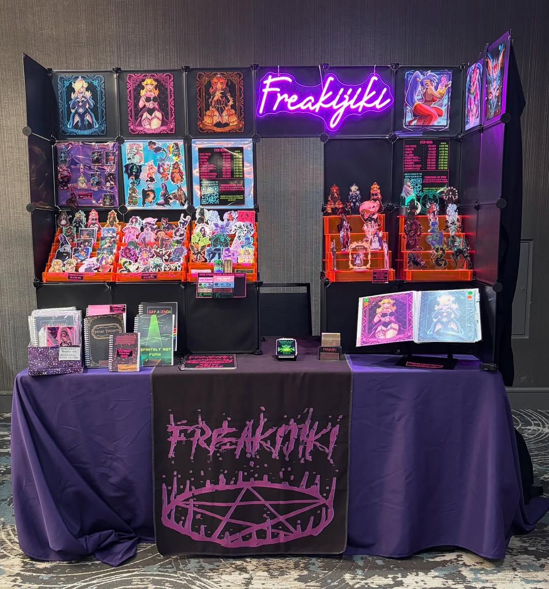 I'm an artist from Iowa specializing in original characters and fan art from my favorite video games, manga, and anime! I specialize in prints, stickers, and charms! I bring sexy stickers, please come take a look and say hi!